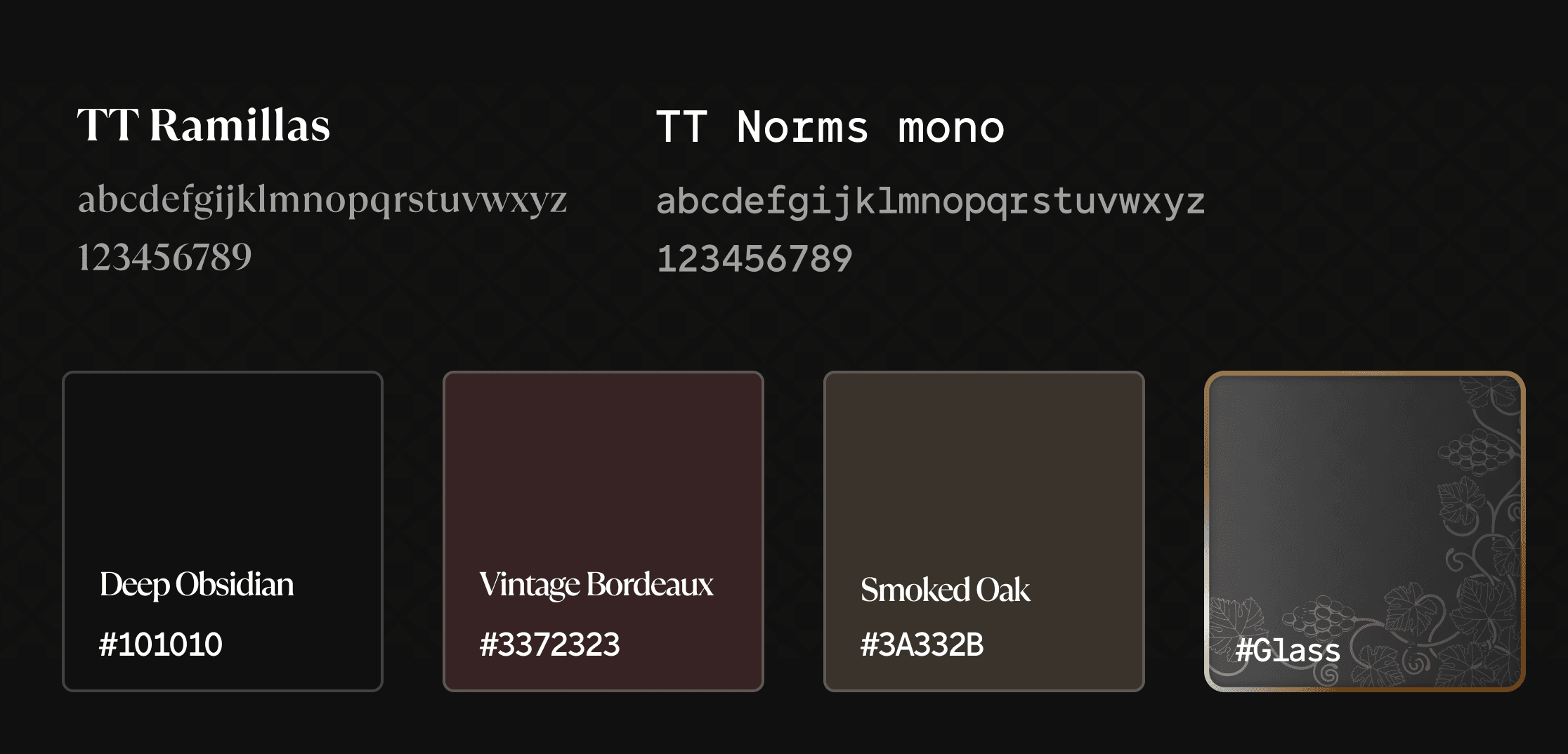 La Dualité Chromatique : Le système repose sur un contraste entre le 'Deep Burgundy' (hommage aux terroirs) et le 'Liquid Gold' (symbole de la valeur et des spiritueux premium). Cette palette est soutenue par un noir 'Obsidian' profond qui ancre la marque dans l'univers du luxe ultra-confidentiel.