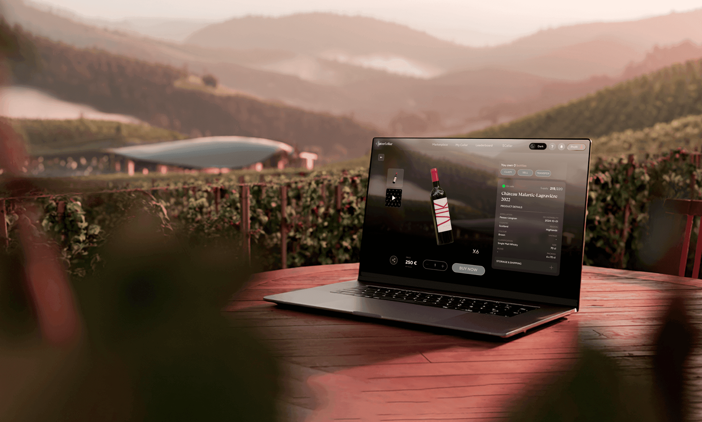 Le site fonctionne comme une vitrine numérique où l'imagerie grand format et les rendus 3D de bouteilles occupent une place centrale. Chaque interaction, du claim de bouteille au trading sur le marché secondaire, a été pensée pour être invisible et sans friction. Le résultat est une expérience "pixel-perfect" conçue pour transformer les amateurs de vin traditionnels en collectionneurs numériques avertis.